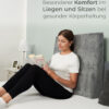 Die Rückenlehne bietet zwei Liegezonen für maximalen Komfort und Ergonomie. Unterschiedlich dicke Memory Schaum Schichten sorgen für mehr Komfort im Schulter-Nacken Bereich. So wie bei einer guten Matratze, vereint auch unser Rückenstützkissen verschiedene Eigenschaften, um Ihre Wirbelsäule optimal zu entlasten. Wohltuende Entlastung von Schultern und Nacken, kombiniert mit einer angenehmen Stützfunktion für den unteren Rücken. So macht Erholung noch mehr Spaß.